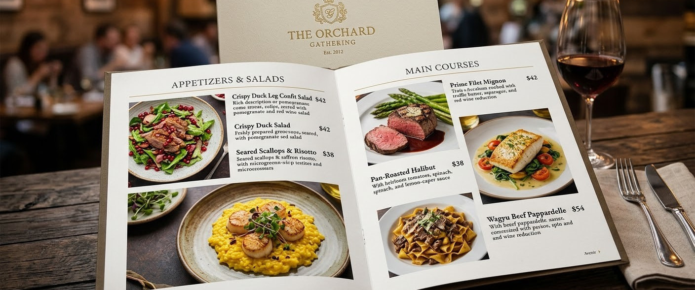 一瞬で伝わる、お料理の魅力 お客様がメニューを開いたとき、最初に目に飛び込んでくるのは「写真」です。