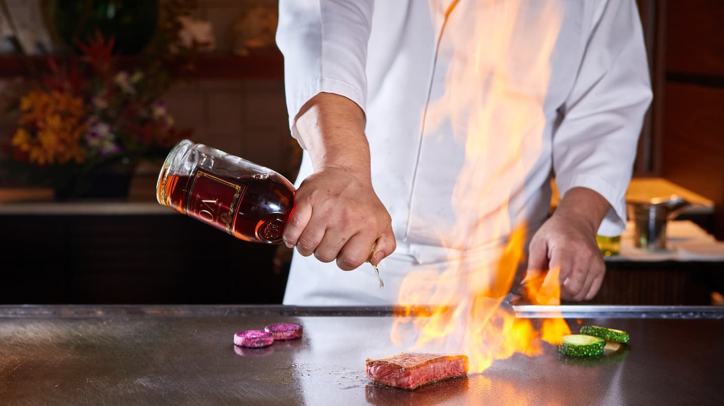 滴る脂と鉄板の熱量を写す。臨場感溢れるメインダイニング撮影。