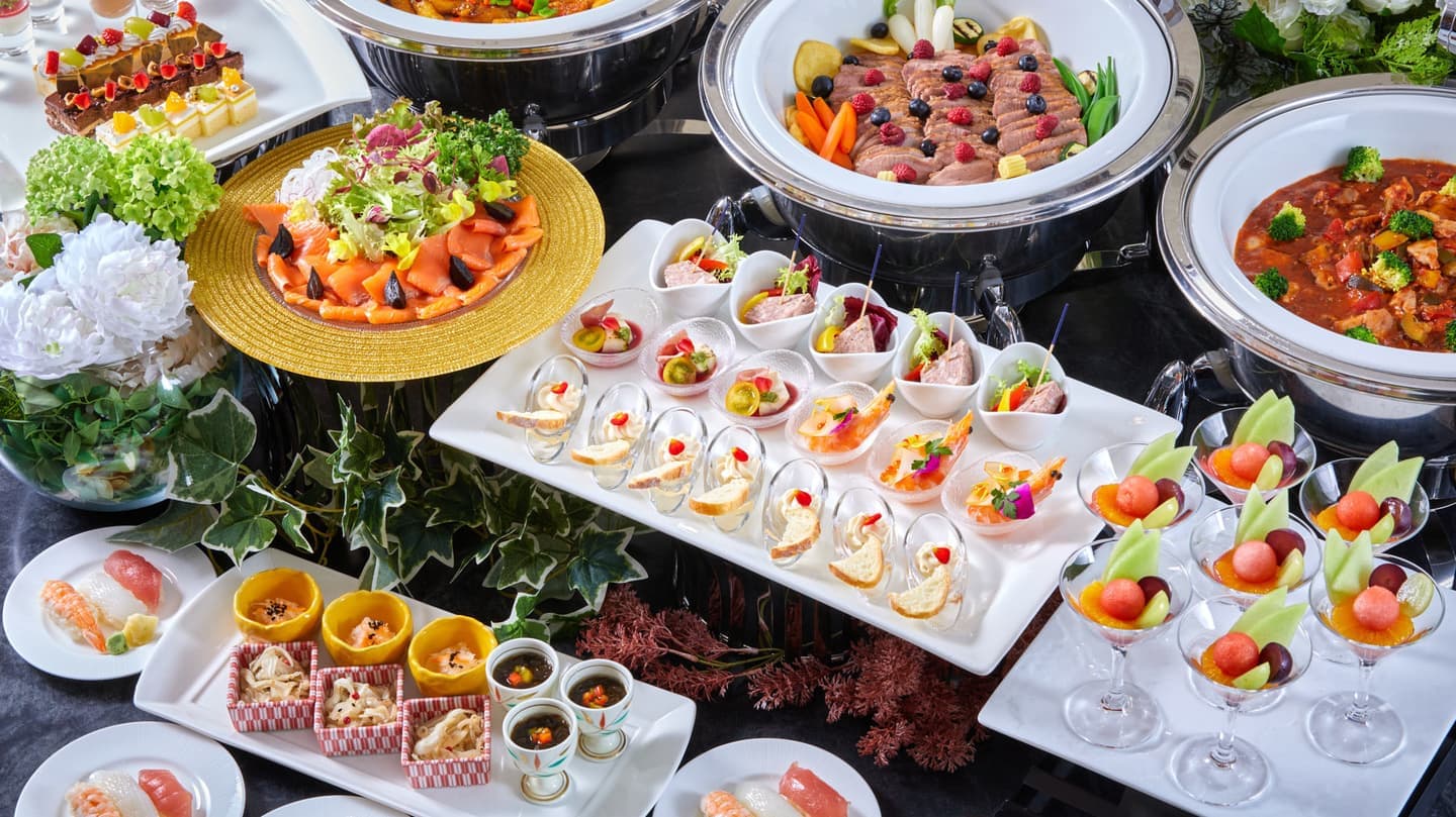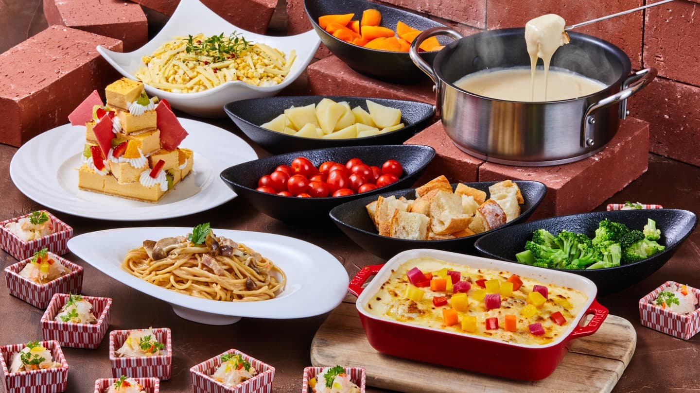 多彩なブッフェの彩りと活気を。食欲をそそる圧倒的な品数描写。